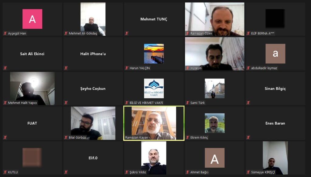 Adıyaman Bilgi ve Hikmet Vakfı grup sorumluları ile İlahiyatçı-Yazar Ramazan Kayan hocanın “Bir Yaşam Modeli Olarak Davet” konulu hasbihali Online olarak gerçekleştirildi. Programa Kahta Gönülkuşağı Derneği ve Besniden de grup sorumlusu hocalarımız icabet etti.
